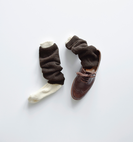 アルパカの糸を使用したウォーマーは、アーム・レッグ兼用で、手元と足元を温かく包み込みます。伸縮性の良い鹿の子編みで優しくフィットし、着け心地も◎。