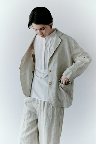 doux bleu|リネンレーヨン ストライプジャケット DB-2547-016