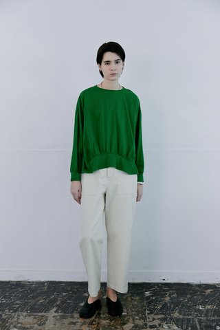 ほどよくハリのある生地が腰まわりをすっきりと見せ、ボディラインを拾いにくい安心感のある穿き心地が魅力です。