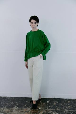 ハリ感のある素材ながら穿き心地は軽やかで、デイリーに取り入れやすいのも魅力。
