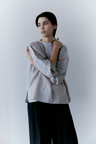 doux bleu|C/L クロスステッチ刺繍ブラウス DB-2613-015