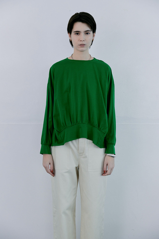毛羽の少ない、上品な光沢感を持つシルケットコットンを使用したボックスシルエットのカットソー。