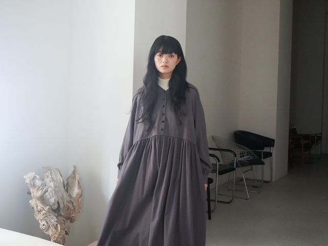 PARIS DE AOUNE|バンドカラー ギャザー ワンピース pa253op015-mt