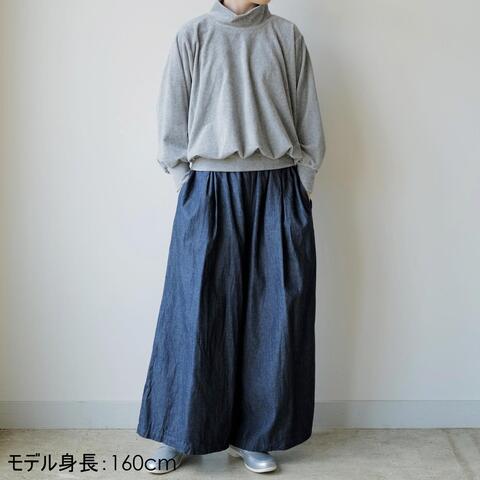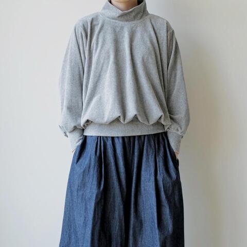 裾と袖口の幅広リブが自然なギャザーを生み、落ち感のある生地が優雅なドレープを描きます。