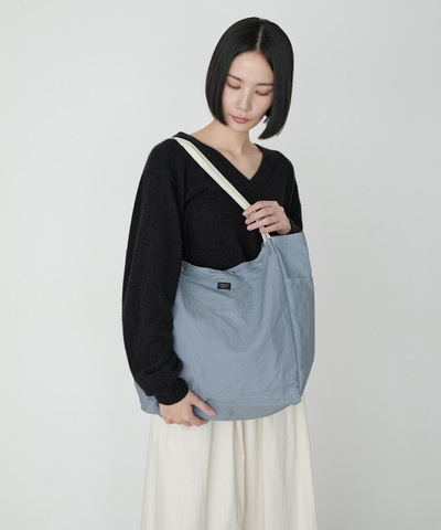 バッグには同素材のポーチが付き、バッグを使わないときは折り畳んでポーチに収納が可能です。