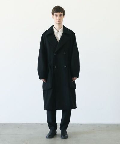 きれいなメルトンのショールカラーが特徴で、落ち着いた雰囲気のコートです。ゆったりとしたシルエットでおしゃれに着こなすことができます。