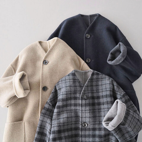 mumokuteki|軽くて暖かい 中綿入りノーカラーコート