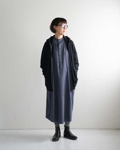 ほどよいサイズ感と首元までしっかりとしまる長めのジップが魅力のダブルジップパーカー。