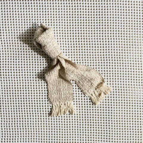 こちらは元々は、キッズ&ベビー用のマフラーとして作ったものですが、大人の方にもコンパクトに巻けると大変ご好評いただいております。