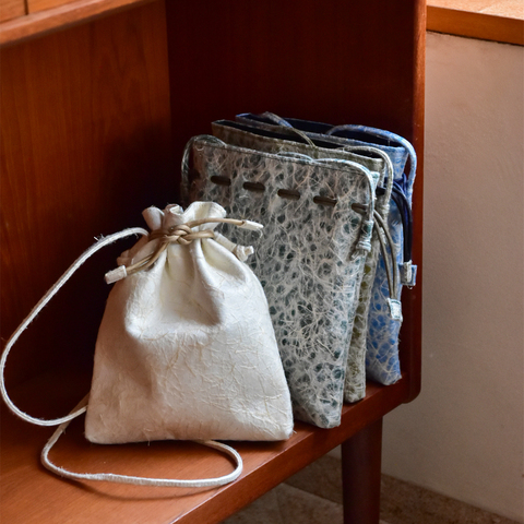 コードを両側に向かって引っ張ると上の口が閉じて巾着型になります。