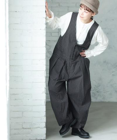 PONT DE CHALONS|イージーサロペット ワイドシルエット ギンガムチェック 22610616 ポンデシャロン