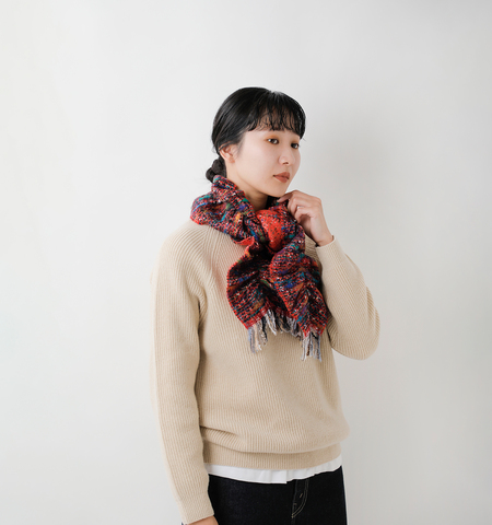 ウールを含んだ柔らかな素材感で、首元をしっかりとあたためながら、冬のコーディネートに彩りを添えてくれます。