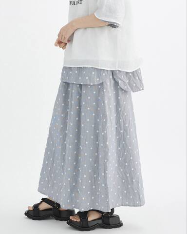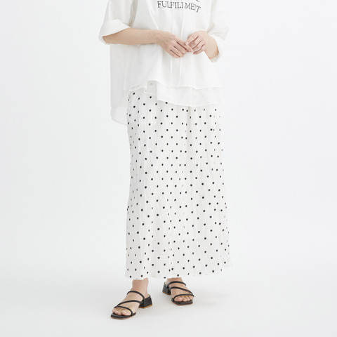綿100%素材に花モチーフの飛び柄刺繍をあしらった、表情豊かなスカート。
