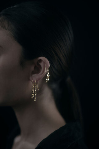 シンプルでどんなコーディネイトにも合わせやすく、動くたびにきらきら揺れて目を引くデザインです。