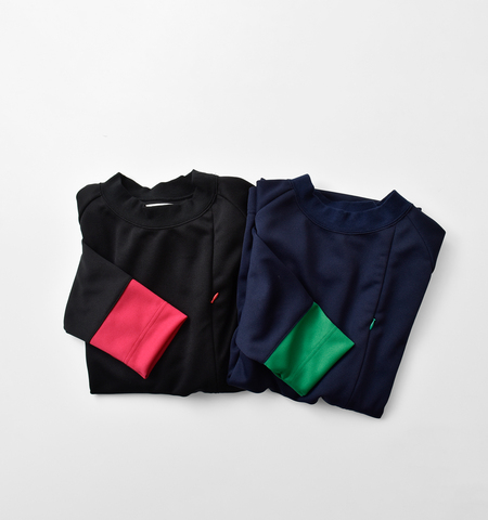 袖口に配色を施すことで、シンプルなトップスでも着こなしに表情が生まれます。手元に視線が集まり、個性を演出してくれるデザインです。