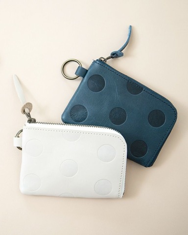 キャンディみたいな水玉模様はKanmi.オリジナル。丸の大きさ、間隔、配置までこだわって作った水玉もようがふっくらと型押しされています。 牛革に型押しし、沈み込んだ部分が少し濃い色でコントラストが魅力です。 ポコポコとした手触りもなんだかほっこりとさせてくれます。