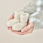 ご好評をいただいております「こひつじ帽」と同じ素材、ヤク100%の小さくて可愛いブーティをお作りしました。 ヤクの毛はしっとりなめらかでちくちく感がなく、素肌に優しい高級天然素材です。