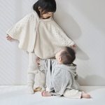 ぽこぽこしたポップコーンの編み模様が特徴のマント、裏地は同じくオーガニックコットンをハイゲージに編んだ編地を使用しているので今の時期はあたたかで快適にお過ごしいただけます。