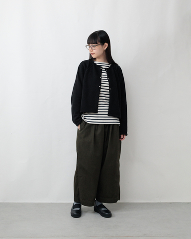 ゆったりとした着心地にすることで、動きやすく、ボリュームがあるものも合わせやすいようにと考えられたカタチなのです。