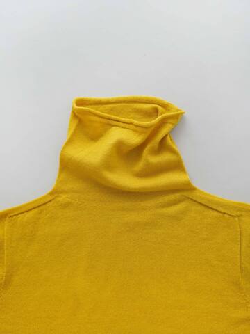 程よく体にフィットするシルエット。一枚でも、レイヤードスタイルにも適しています。しっかりと襟の高さがあり、伸ばしても、クシュクシュとたるませてもかわいいです。襟ぐり、袖口、裾はロール仕様になっています。
