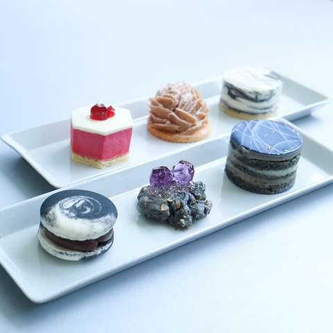 定番の結晶ロックケーキやラピスラズリのオペラ、大理石マカロンが一度に味わえる他、大理石のチーズケーキ、ルビーのムースケーキ、砂漠のバラのモンブランといった新たな鉱物スイーツ3種もセットになったオンラインストアオリジナルセレクトです。
