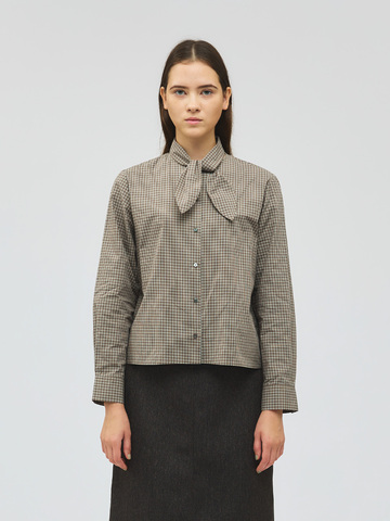身頃とは別の生地に変えてデザインした、襟と袖にプリーツをあしらった上品な1枚。 襟をだしたり、袖口を見せたりインナー使いとしても活躍していただけるシャツです。