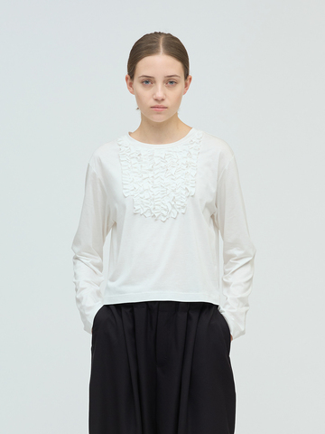 身頃とは別の生地に変えてデザインした、襟と袖にプリーツをあしらった上品な1枚。 襟をだしたり、袖口を見せたりインナー使いとしても活躍していただけるシャツです。