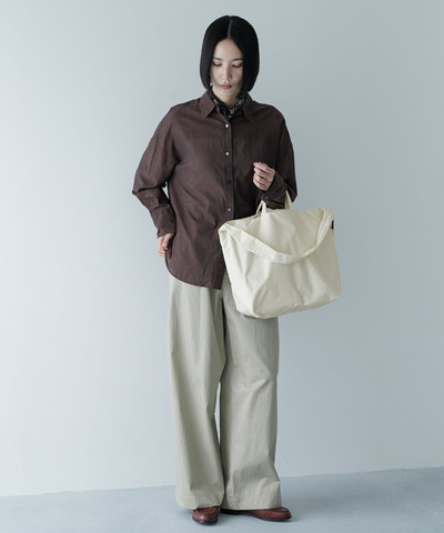 特殊な加工により、「軽量」「自立性」「撥水性」の機能性があるナイロン素材を使用した”SHRINK NYLON”シリーズ。ドライタッチでナチュラルな風合いは、どこか上品な印象を与えてくれます。