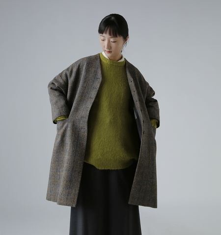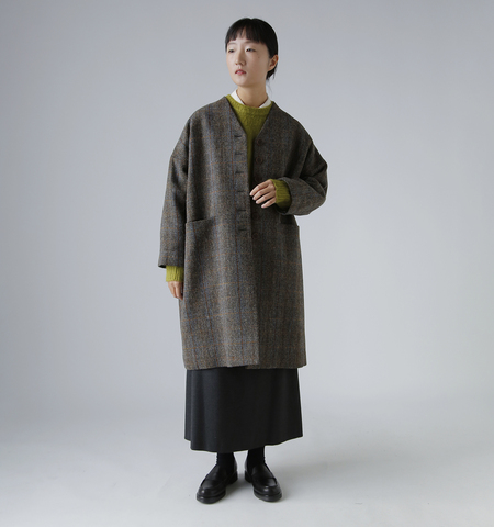 「キング・オブ・ツィード」とも称される手織りのツィード生地「Harris Tweed(ハリスツィード)」で、atelier naruse定番のコクーン型コートをつくりました。
