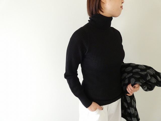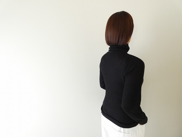 柔らかな風合いのコットンの糸を使用し、ハイゲージでゆるっふわっとワッフル編みにしたタートルネックプルオーバーです。