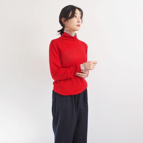 1枚で重ね着上手になれるリヨセルハーフミラノリブ レイヤードタートルです。まるでインナーを重ねたような襟元と袖口の配色デザイン。実際は1枚なのに、手間をかけずにレイヤードスタイルが完成します。忙しい朝でもサッと着るだけでこなれ感が出せるのは嬉しいポイント。