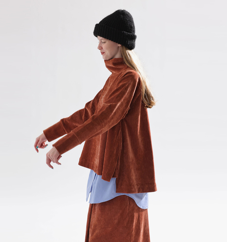 ポリエステル×レーヨンの混紡素材を使用。ほどよいハリと落ち感を兼ね備え、動きのあるシルエットを美しく演出します。シワになりにくく、お手入れも簡単なデイリーユースにぴったりの素材感です。
