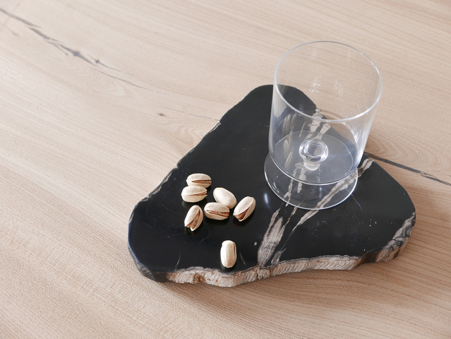 木の化石とも呼ばれる珪化木(けいかぼく)から作られたディスプレイプレート。