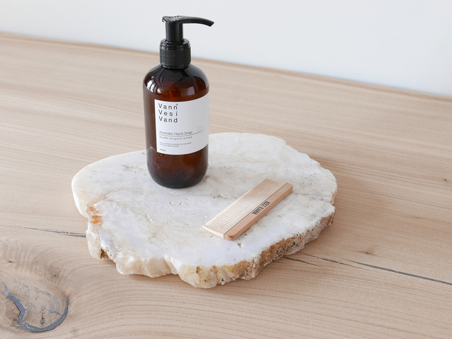 天然石から作られた瑪瑙(メノウ)のディスプレイプレート。複雑な模様と透明感に惹きこまれます。