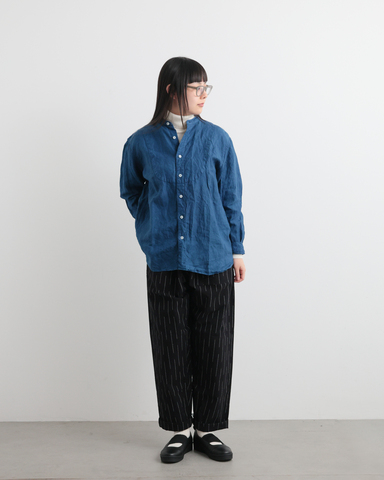 落ち着いた色味で、普段のコーディネートにも自然になじみ、久留米絣のもんぺを初めて選ぶ方にもおすすめです。