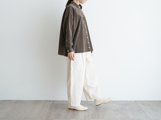 身幅をたっぷりと取っているためラインを拾いづらく、ふんわりとしたシルエットに仕上がりました。