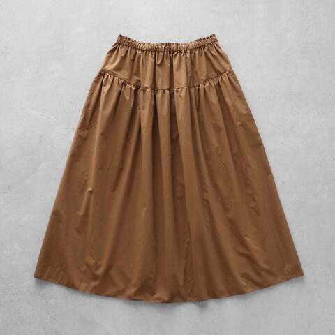 HUIS|オーガニックコットン2段ギャザースカート(キャメル)/U407-H02-51CML【送料無料】