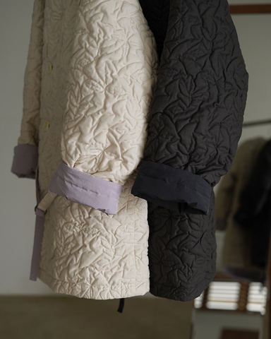 ARMEN|キルティング カフスリブ オーバーサイズド フーデッド コート nam2154pp-yo アーメン