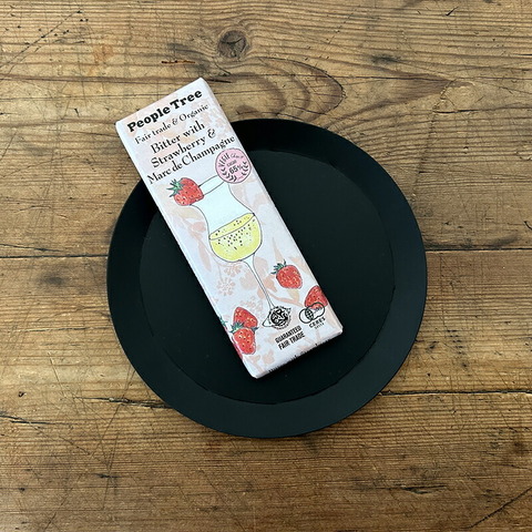 マール・ド・シャンパーニュを練り込んだビターチョコに、甘酸っぱい有機イチゴのアクセント。
