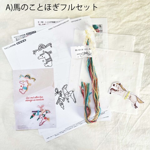- A)スノーカット コットンリネン布、図案と説明書、刺繍糸の"フルセット"