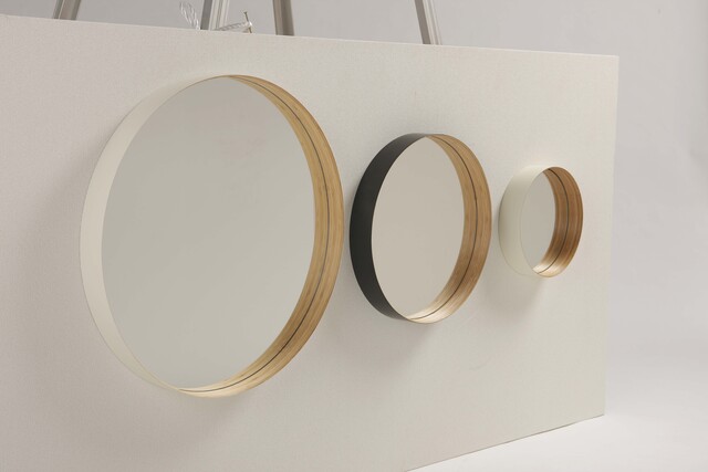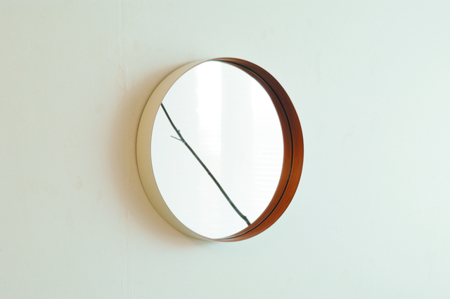 こちらは、フレームに竹集成材の曲げ特性を活かした丸型の壁掛けミラーです。