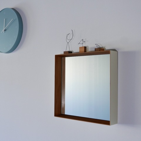 こちらはフレームに竹集成材を使用した、30cm角の正方形でシンプルなデザインの角型壁掛けミラーです。