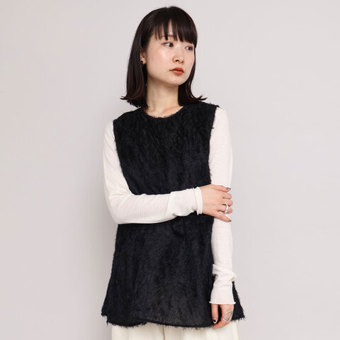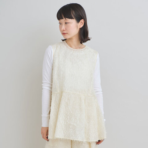 程良い透け感とレーヨンフェザーの毛足感が特徴の ノースリブラウス