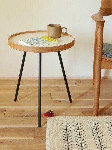 こちらはスチール製の脚と天板に竹集成材でできたトレイをのせて使用するサイドテーブル。
