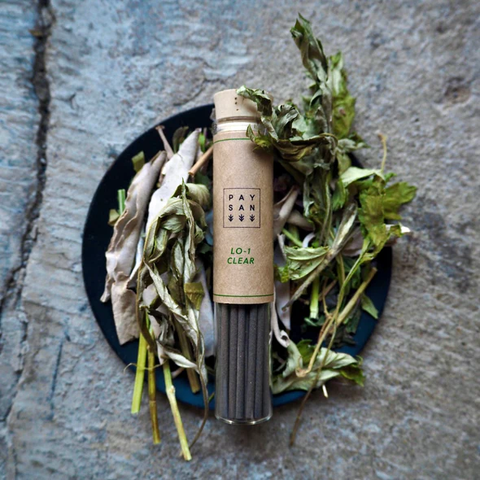 石川県の河北潟干拓地で15年以上、農薬や肥料に頼らずに50種類以上のハーブを栽培しているハーブ農園のPAYSAN(ペザン)と協業して生まれたリユースハーブ線香。ハーブを摘み取った後に製品化することができない廃棄予定のハーブの茎を粉末状に加工し、再利用しています。