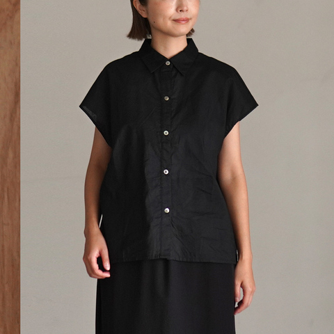 軽やかな着心地と女性らしいバランスが魅力のフレンチスリーブシャツ。肩のラインに沿うように落ちるシルエットが、程よい抜け感を添えつつ上品な印象に仕上げます。