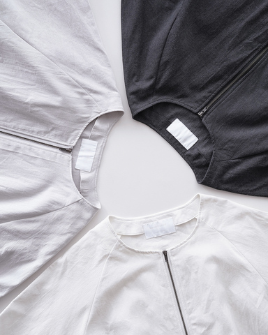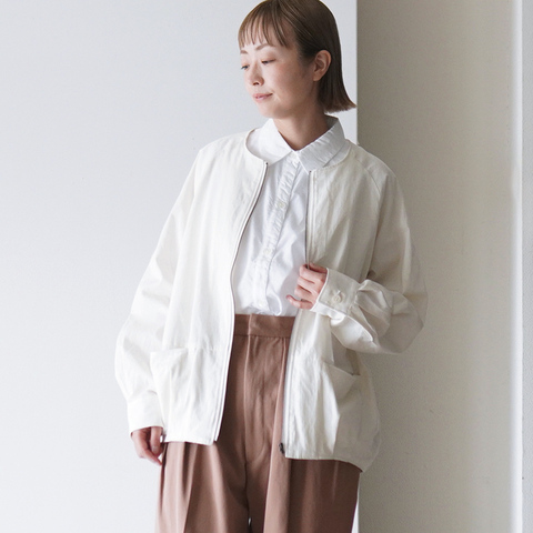 フロントジップとシームポケットにより、すっきり見えと機能性を両立。カジュアルからきれいめまで幅広く活躍する一着です。