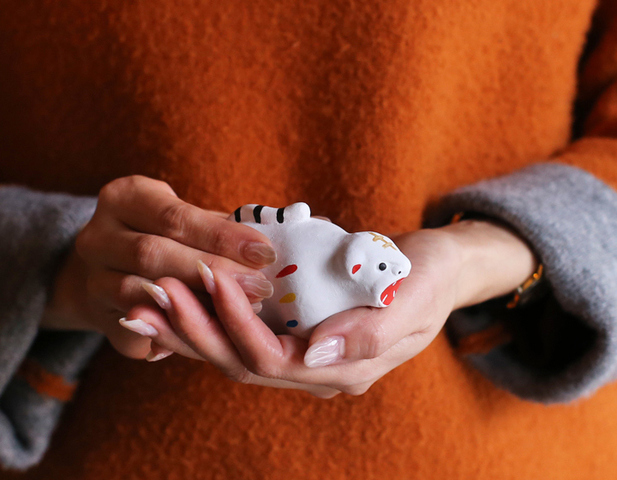 張り子の虎のような大きな口や堂々とした表情は、たくさんの福を呼び込んでくれそうです。身の回りに置いておくと、見ているだけでこっちまで元気がでてきます。