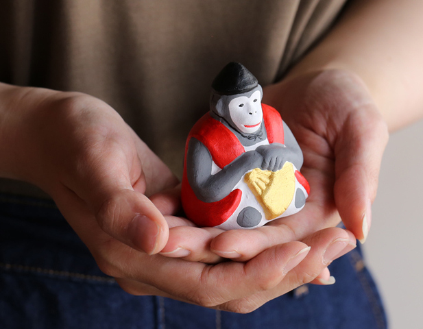 干支シリーズの申は人形の中に玉を入れた土鈴で、振るとカランコロンと優しい音色をが聞こえてきます。狂言の有名な演目のひとつ「靭猿(うつぼざる)」がモデルの可愛らしい姿に思わず笑みがこぼれます。