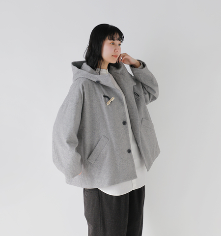 Dulcamara(ドゥルカマラ)よりウール メルトン ダッフル ショート コートのご紹介です。柔らかく温かみのあるウールメルトンを使用し、見た目にも着心地にもぬくもりを感じられる一着。通常のダッフルコートより着丈を短めに設定することで、重たく見えずデイリーに取り入れやすい仕上がりになっています。